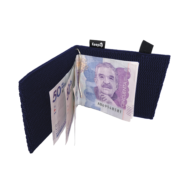 Keepup Bill Casual está elaborada con fibras elásticas que sujetan muy bien los documentos, posee dos compartimientos para documentos y un práctico clip para poner los billetes y encontrar fácilmente su denominación.